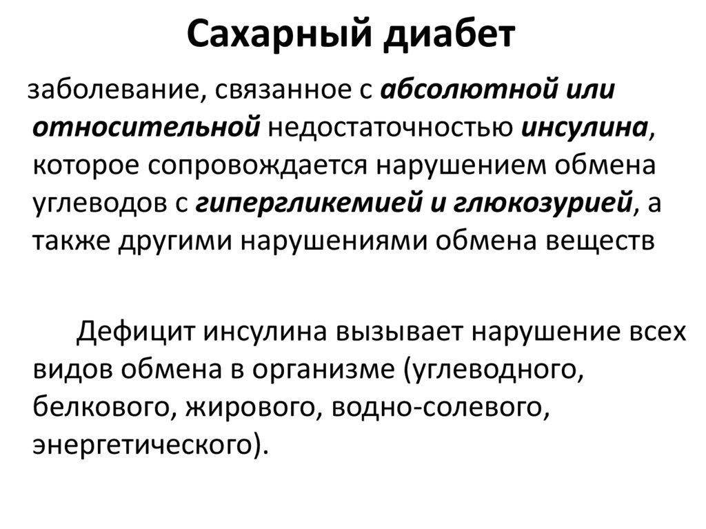 Сахарный диабетзаболевание, связанное с абсолютной или