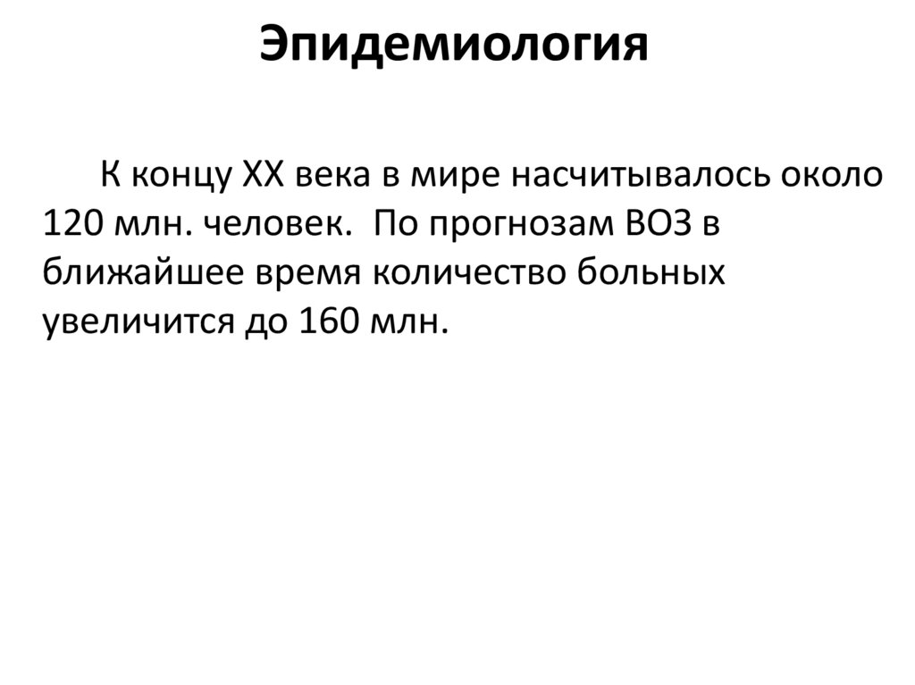 ЭпидемиологияК концу XX века в мире насчитывалось около