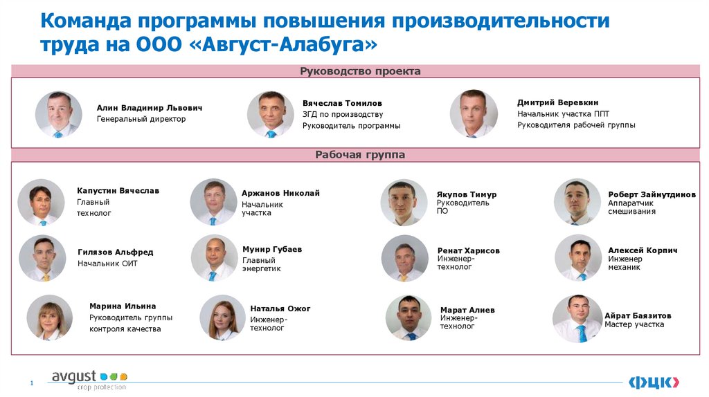 Команда программы повышения производительноститруда на ООО «Август-Алабуга»