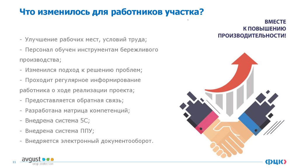 Что изменилось для работников участка?- Улучшение рабочих мест, условий труда;