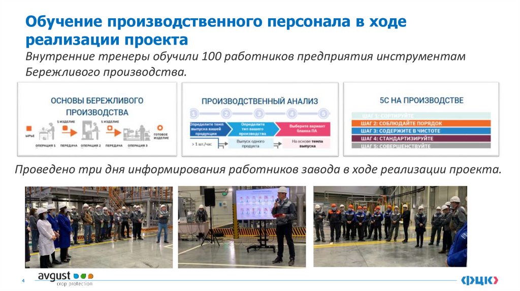 Проведено три дня информирования работников завода в ходе реализации проекта.