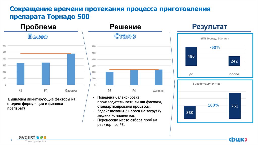 Сокращение времени протекания процесса приготовленияпрепарата Торнадо 500