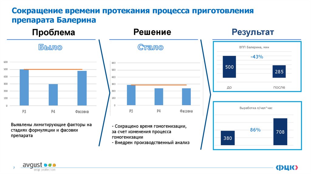 Сокращение времени протекания процесса приготовленияпрепарата Балерина