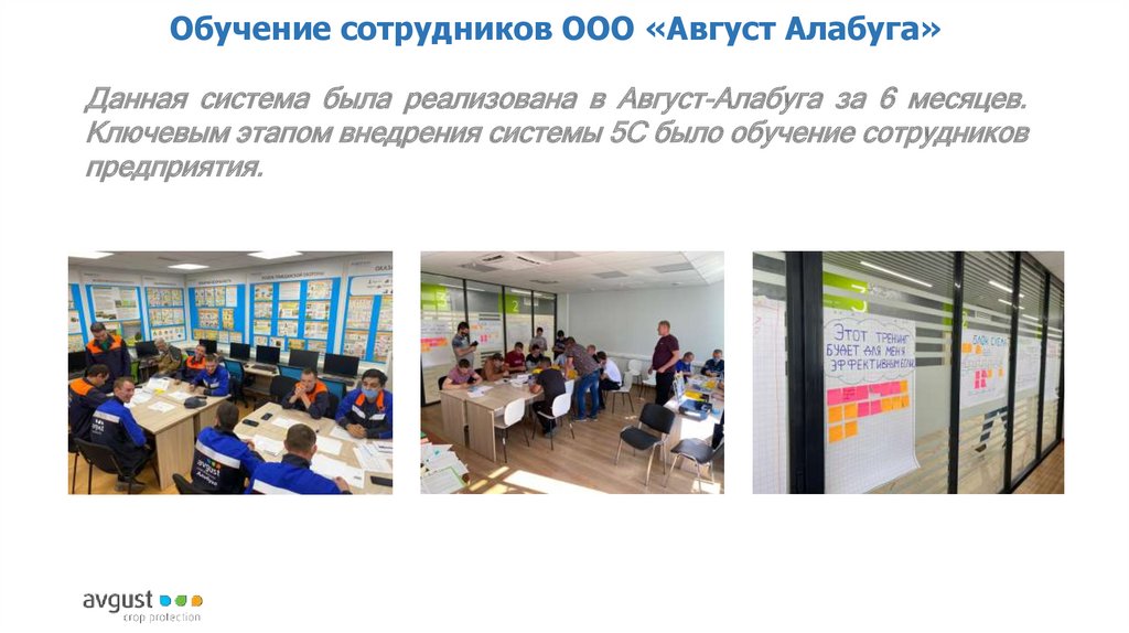 Обучение сотрудников ООО «Август Алабуга»Данная система была реализована в Август-Алабуга за 6 месяцев.