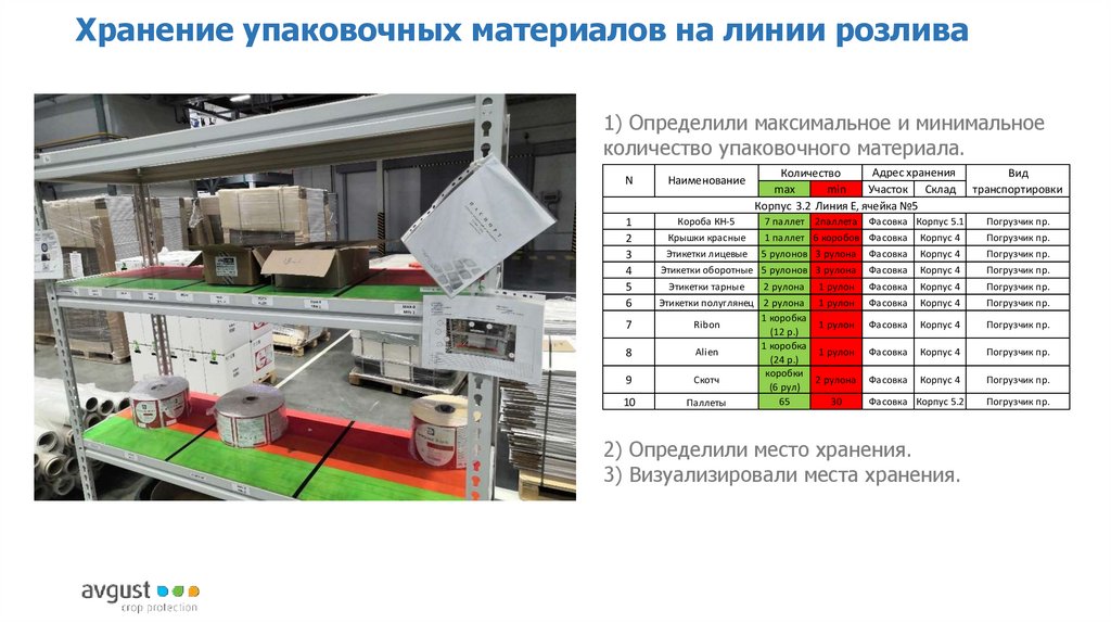 Хранение упаковочных материалов на линии розлива1) Определили максимальное и минимальное
