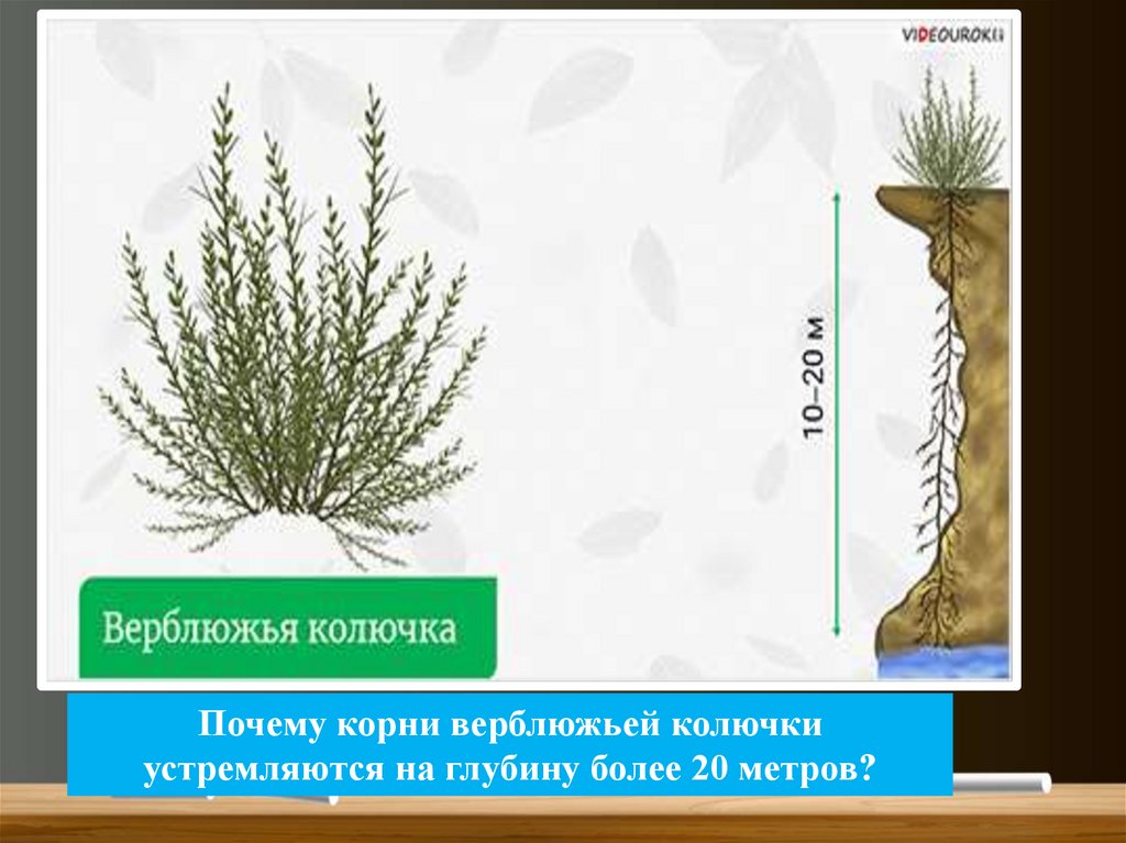 Почему корни верблюжьей колючкиустремляются на глубину более 20 метров?