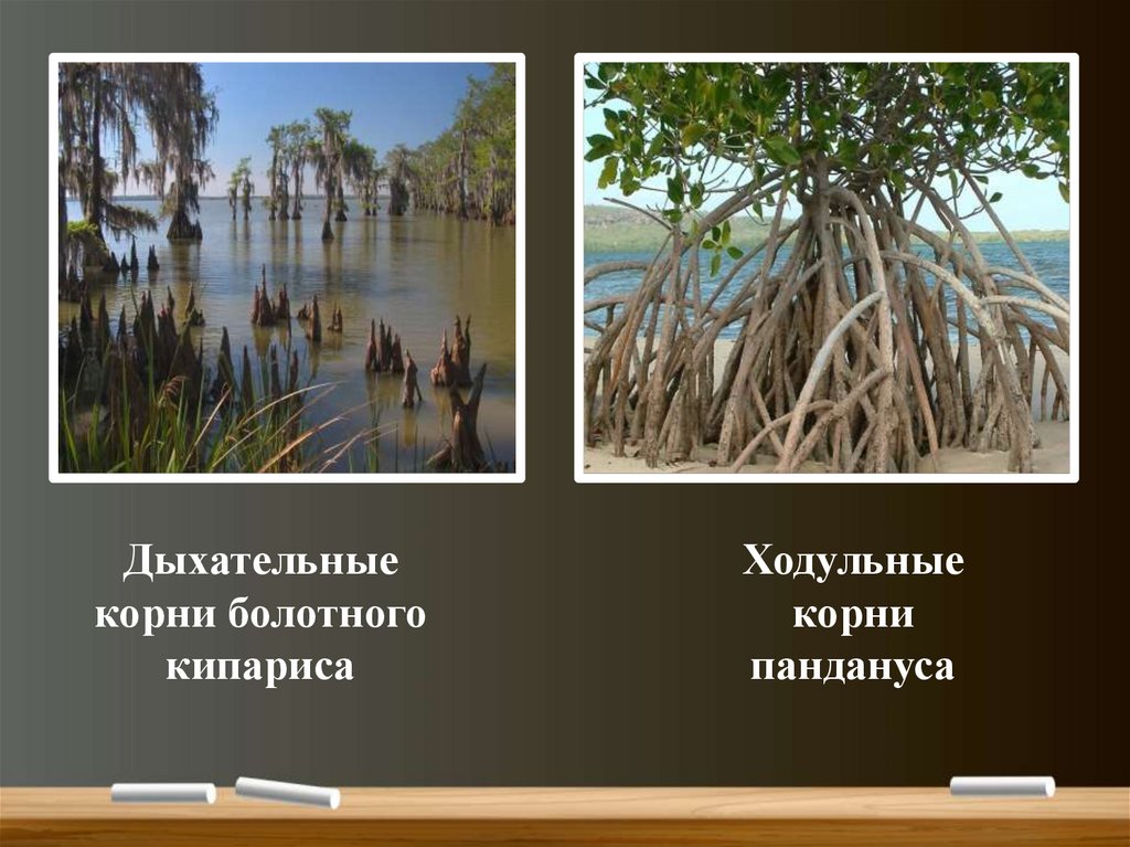• Корни бывают: дыхательные, воздушные,