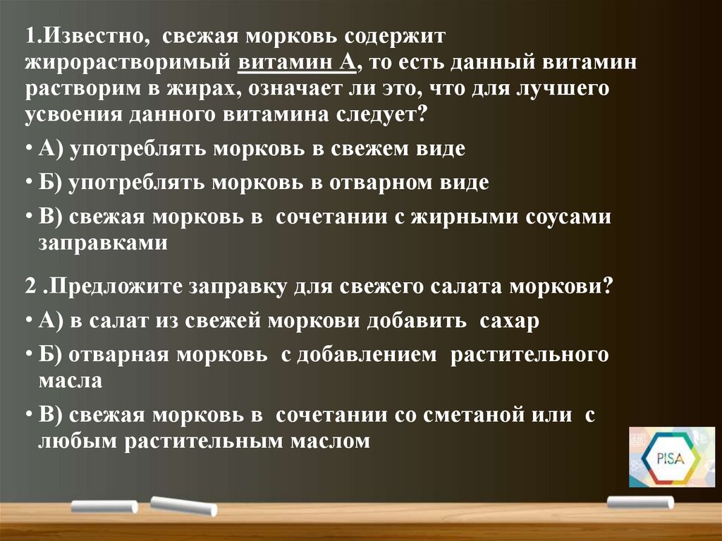 1.Известно, свежая морковь содержитжирорастворимый витамин А, то есть данный витамин