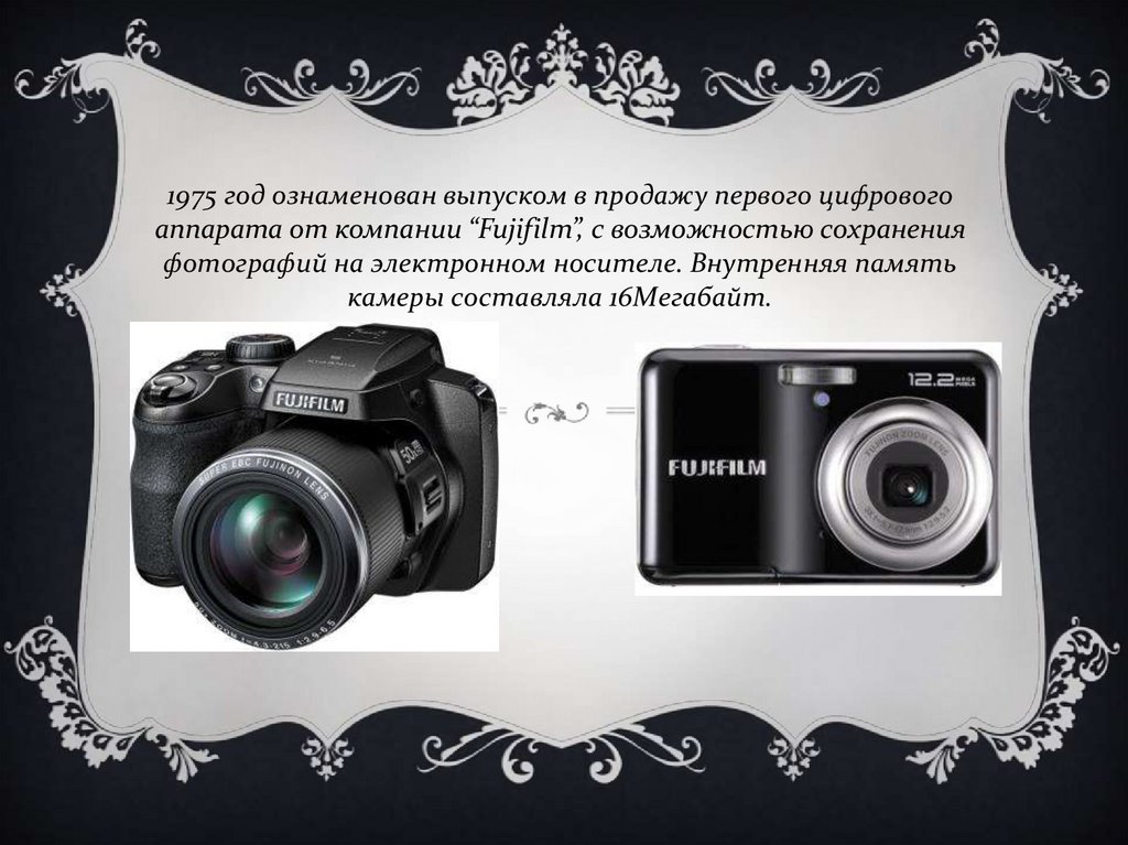1975 год ознаменован выпуском в продажу первого цифровогоаппарата от компании “Fujifilm”, с возможностью сохранения