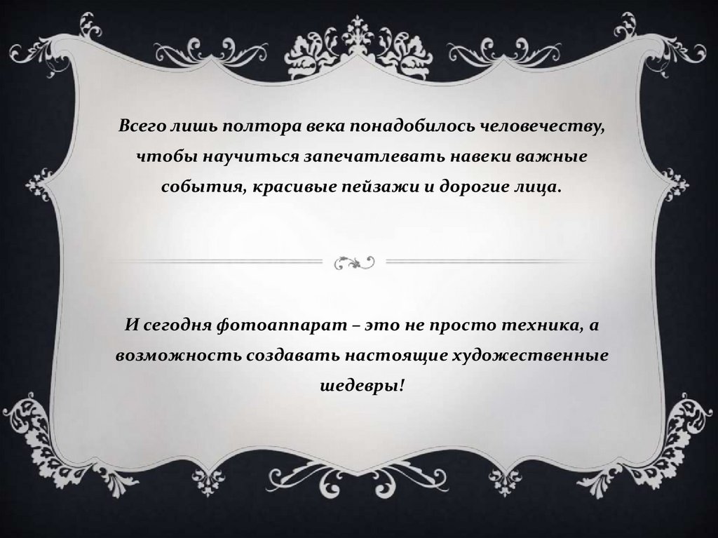 Всего лишь полтора века понадобилось человечеству,чтобы научиться запечатлевать навеки важные