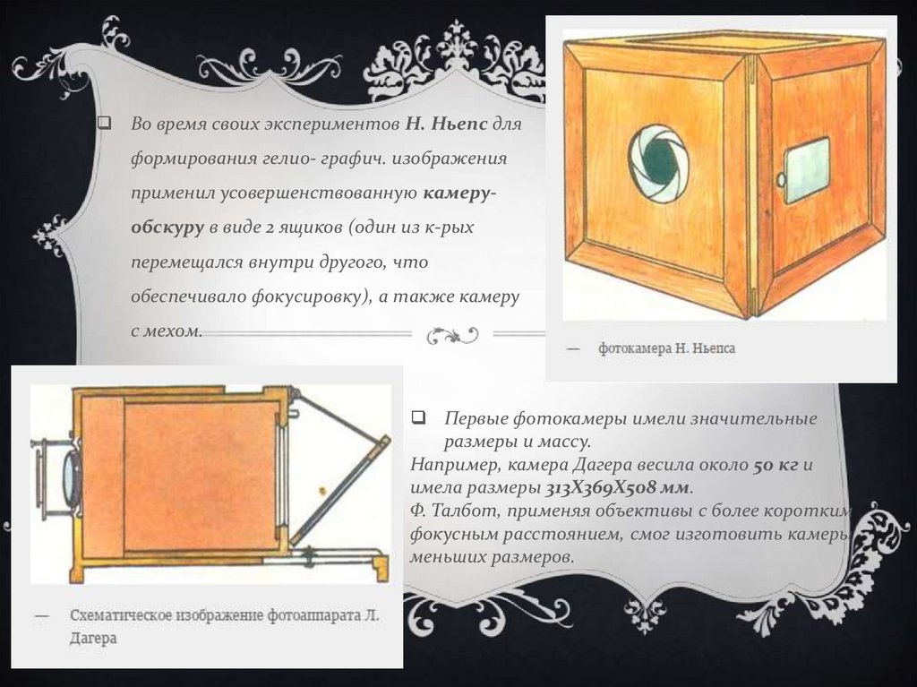 Например, камера Дагера весила около 50 кг и
