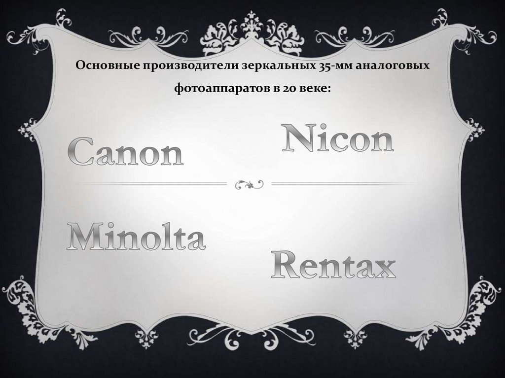 Основные производители зеркальных 35-мм аналоговыхфотоаппаратов в 20 веке: