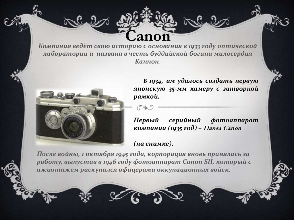 работу, выпустив в 1946 году фотоаппарат Canon SII, который с