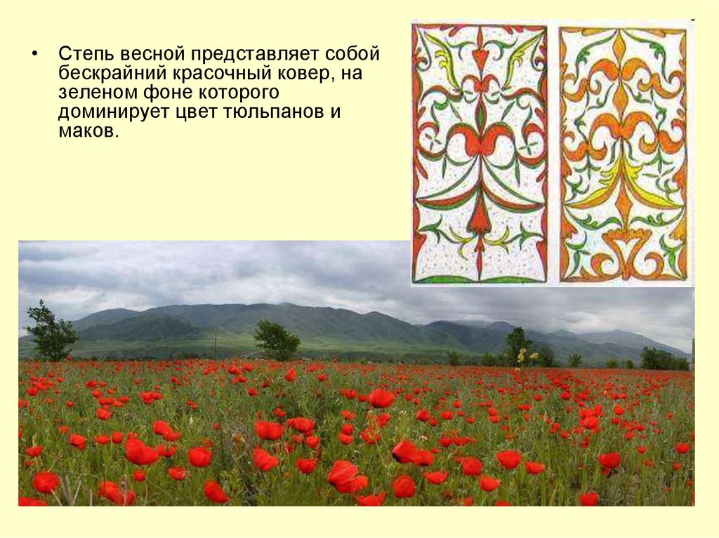 • Степь весной представляет собойбескрайний красочный ковер, на