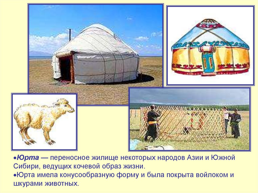 Юрта — переносное жилище некоторых народов Азии и ЮжнойСибири, ведущих кочевой образ жизни.
