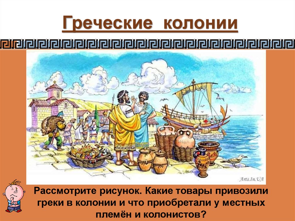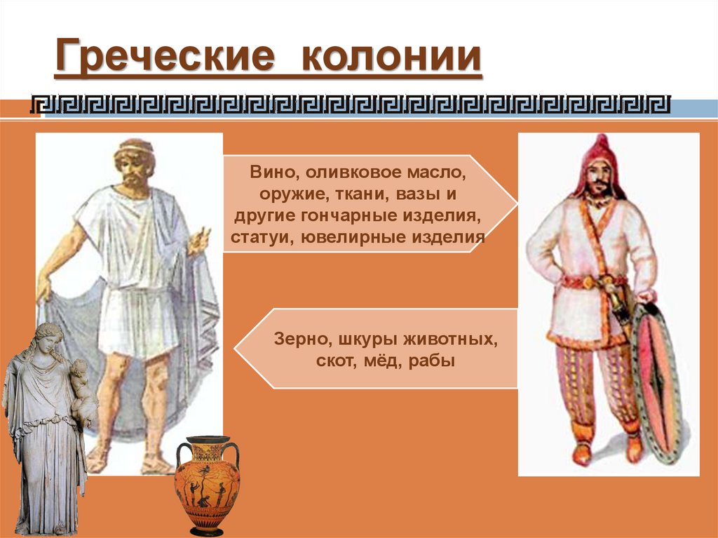 Греческие колонииРассмотрите рисунок. Какие товары привозили