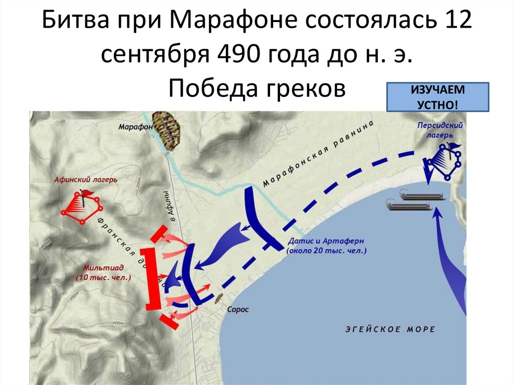Битва при Марафоне состоялась 12сентября 490 года до н. э.