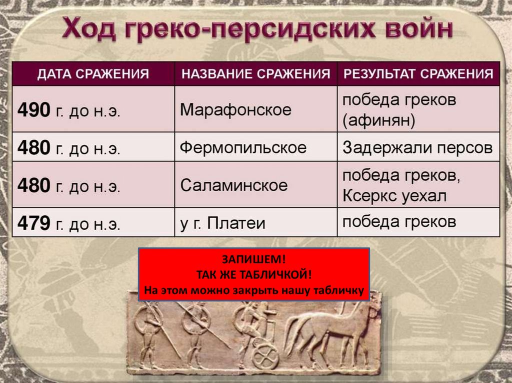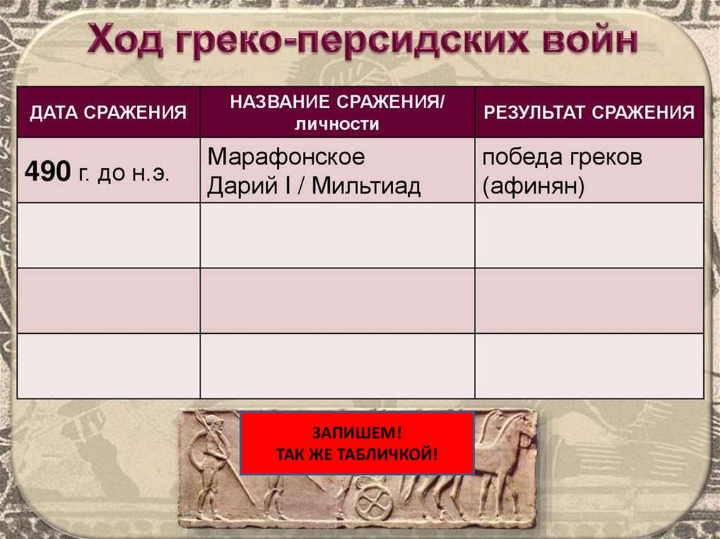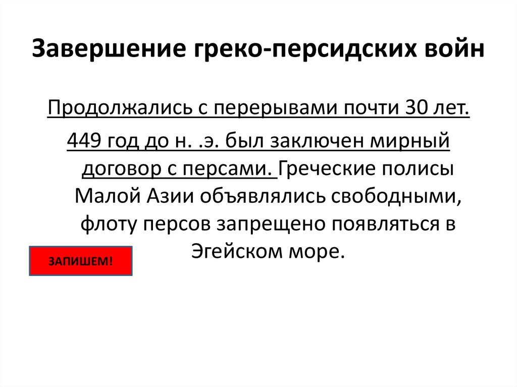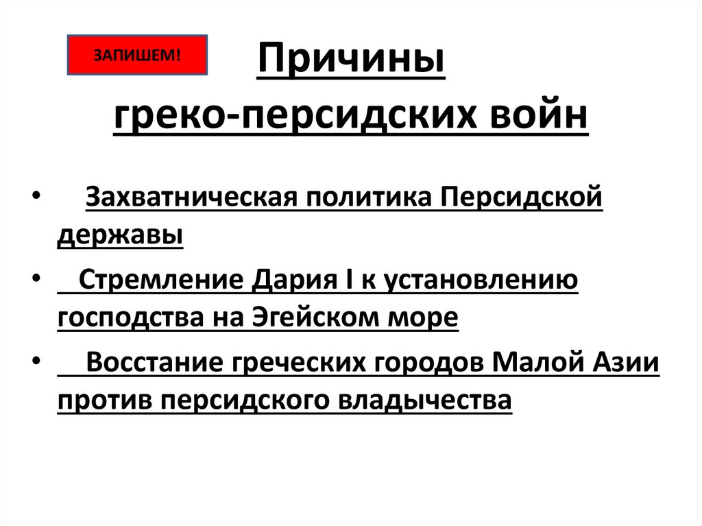 Тема ЗАПИШЕМ!Греко – персидские войны