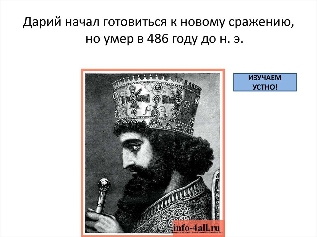 Дарий начал готовиться к новому сражению,но умер в 486 году до н. э.