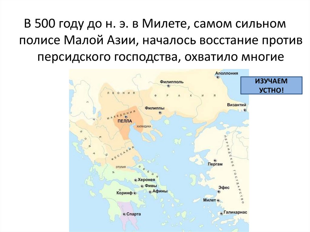В 500 году до н. э. в Милете, самом сильномполисе Малой Азии, началось восстание против