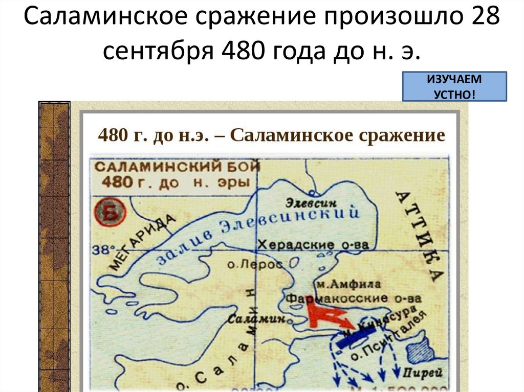 Саламинское сражение произошло 28сентября 480 года до н. э.