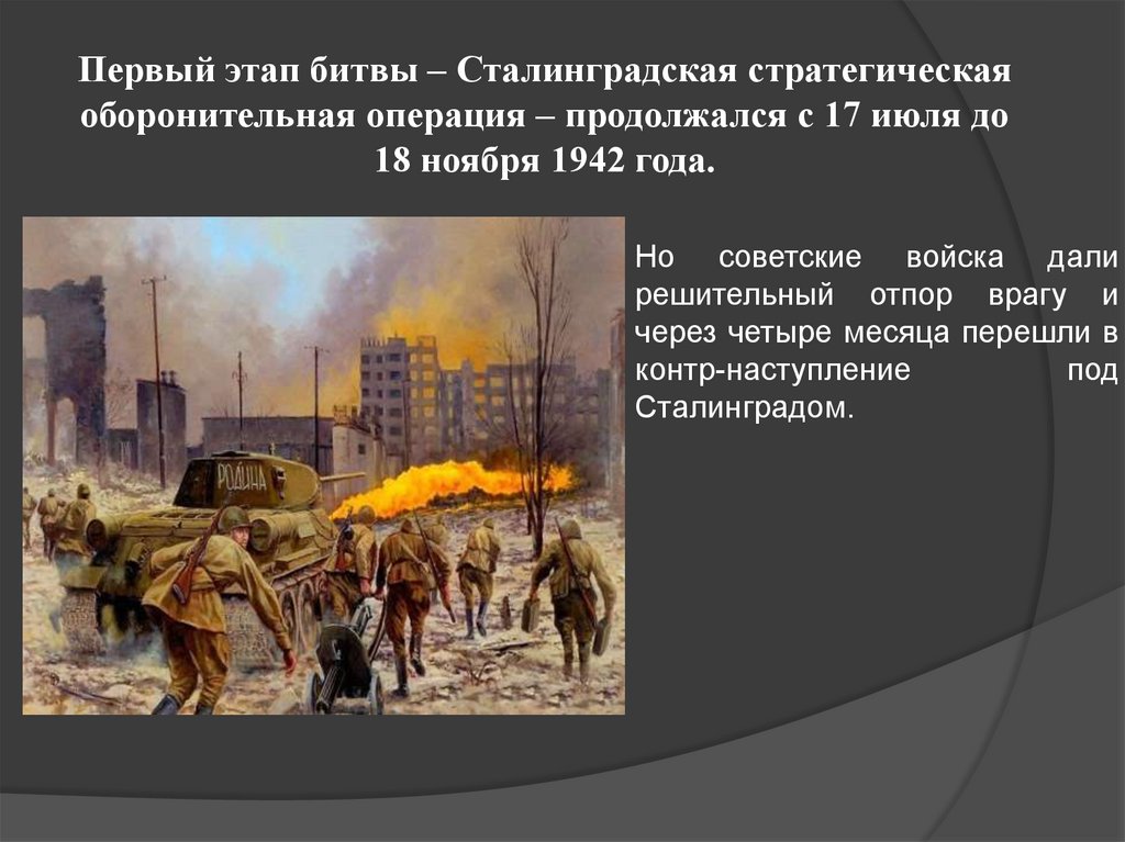 Первый этап битвы – Сталинградская стратегическаяоборонительная операция – продолжался с 17 июля до