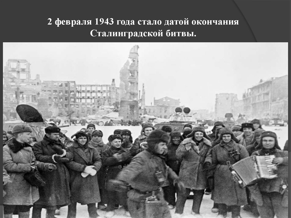 2 февраля 1943 года стало датой окончанияСталинградской битвы.