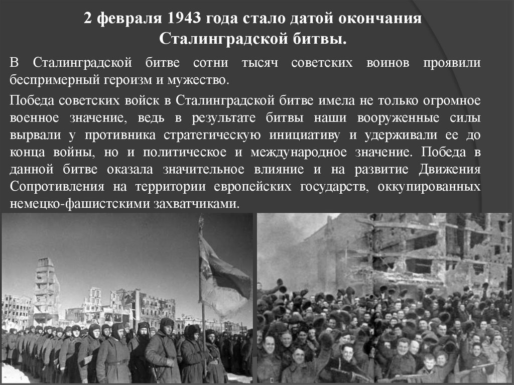 Победа советских войск в Сталинградской битве имела не только огромное