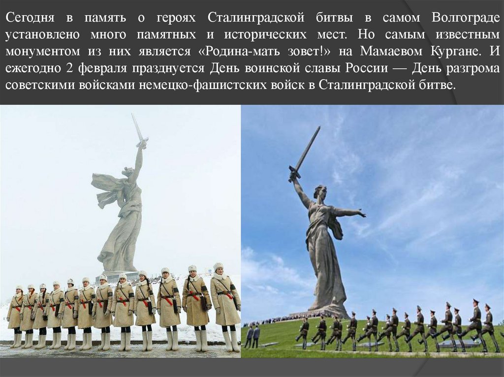 монументом из них является «Родина-мать зовет!» на Мамаевом Кургане. И