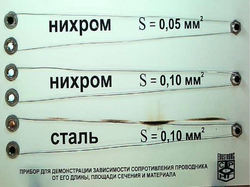 Из таблицы видно, что железная проволока длиной 1 м и сечением 1 мм2обладает сопротивлением 0,098 Ом. Чтобы получить 1 Ом сопротивления,