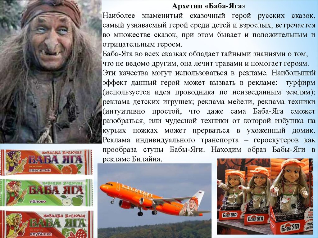 Архетип «Баба-Яга»Наиболее знаменитый сказочный герой русских сказок,
