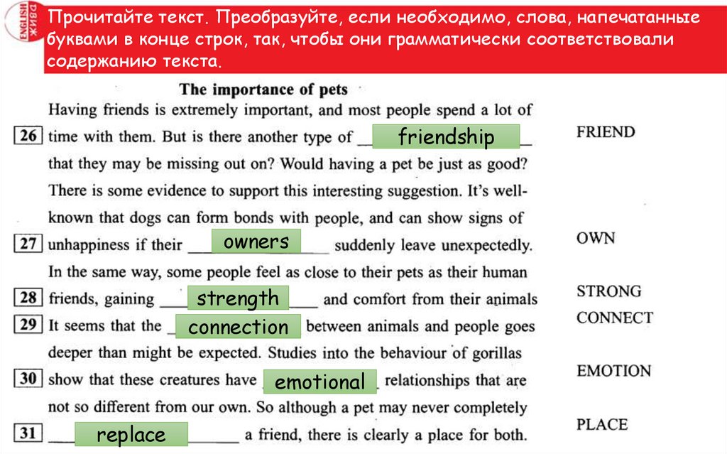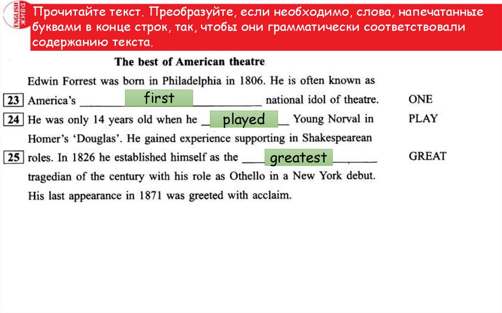 Прочитайте текст. Преобразуйте, если необходимо, слова, напечатанныебуквами в конце строк, так, чтобы они грамматически соответствовали