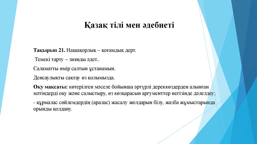 Қазақ тілі мен әдебиетіТақырып 21. Нашақорлық – қоғамдық дерт.