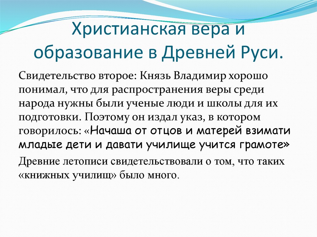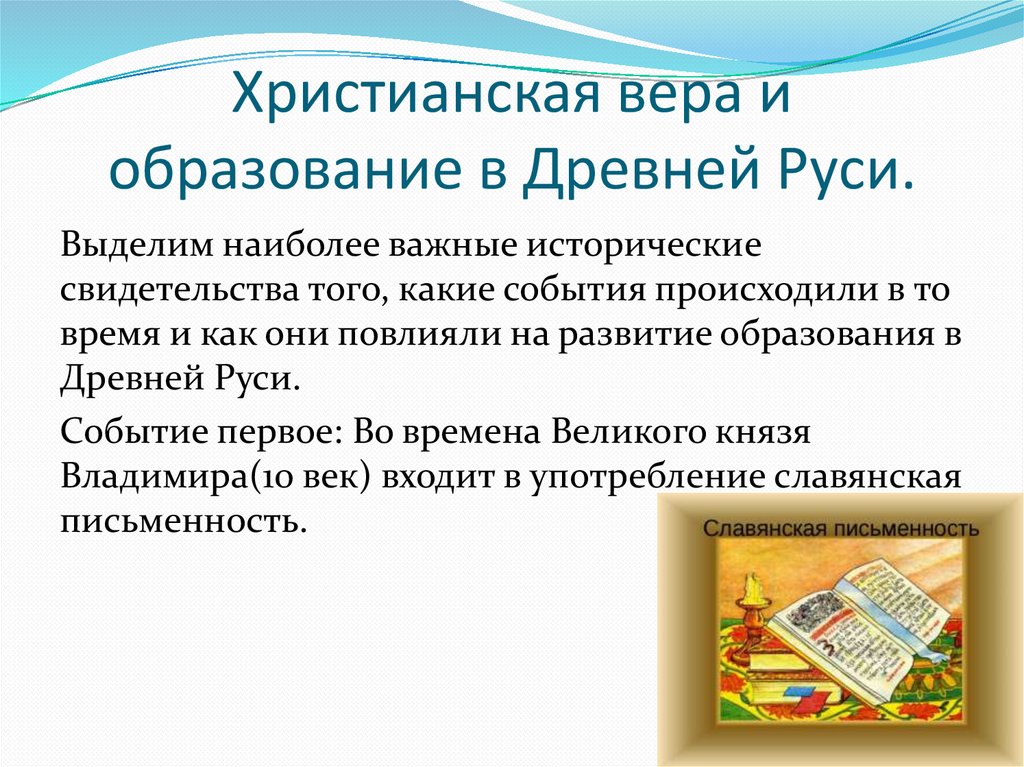 Христианская вера иобразование в Древней Руси.