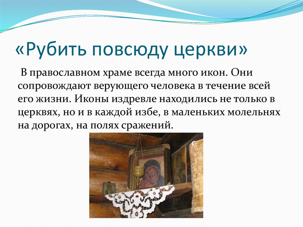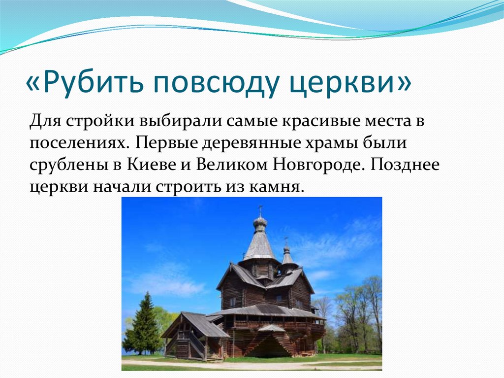 повсюду церкви и ставить их по тем местам, где