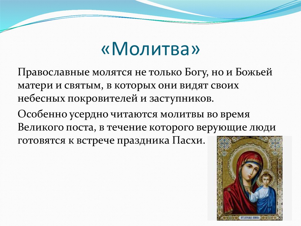 «Молитва»Православные молятся не только Богу, но и Божьей