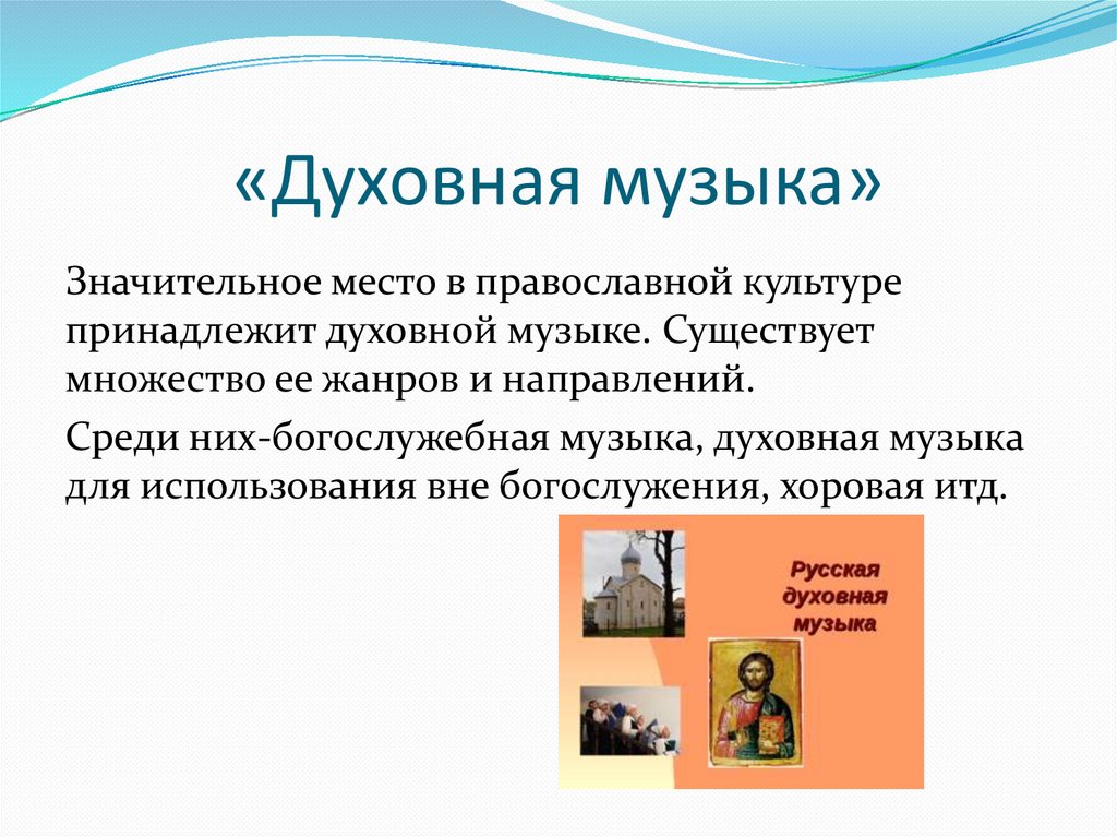 «Духовная музыка»Значительное место в православной культуре