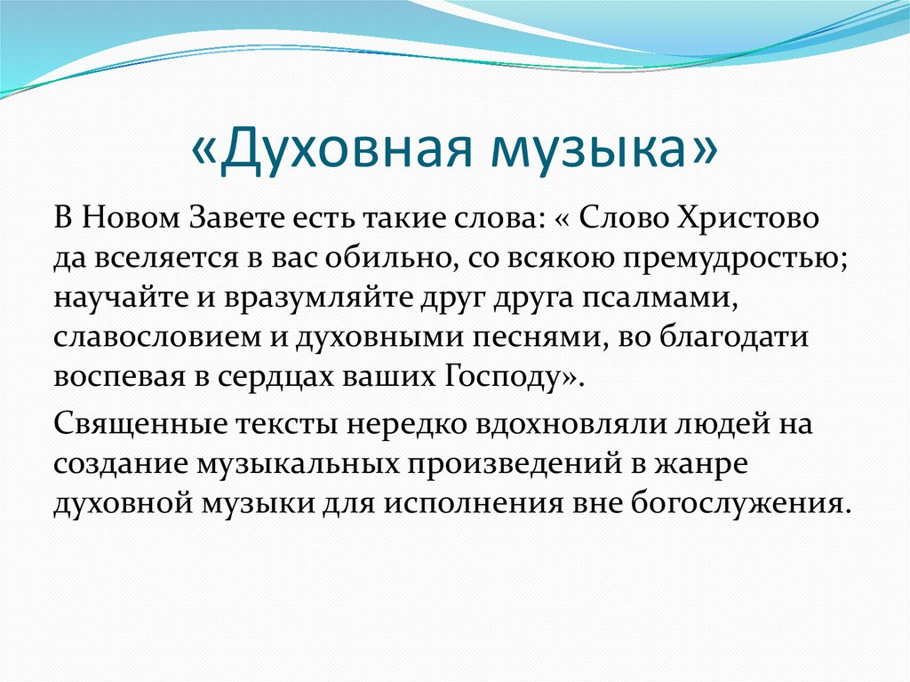 «Духовная музыка»В Новом Завете есть такие слова: « Слово Христово