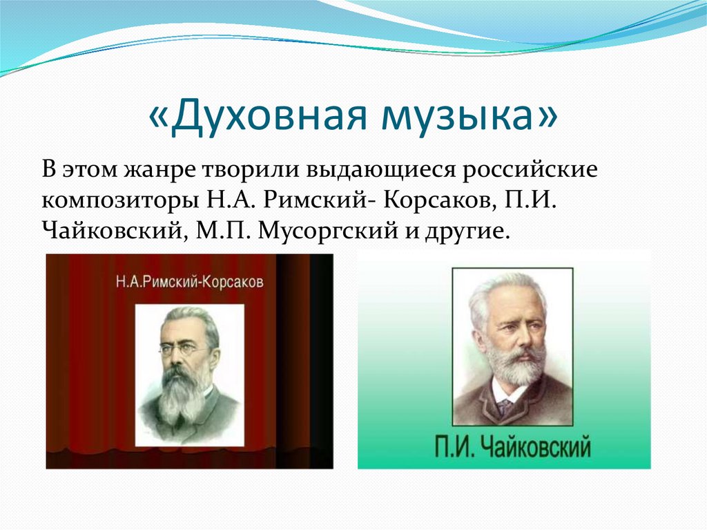 «Духовная музыка»В этом жанре творили выдающиеся российские