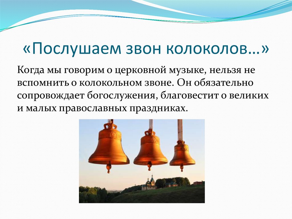 «Послушаем звон колоколов…»Когда мы говорим о церковной музыке, нельзя не