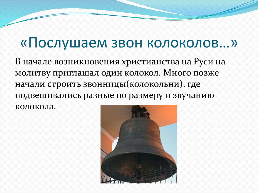 «Послушаем звон колоколов…»В начале возникновения христианства на Руси на