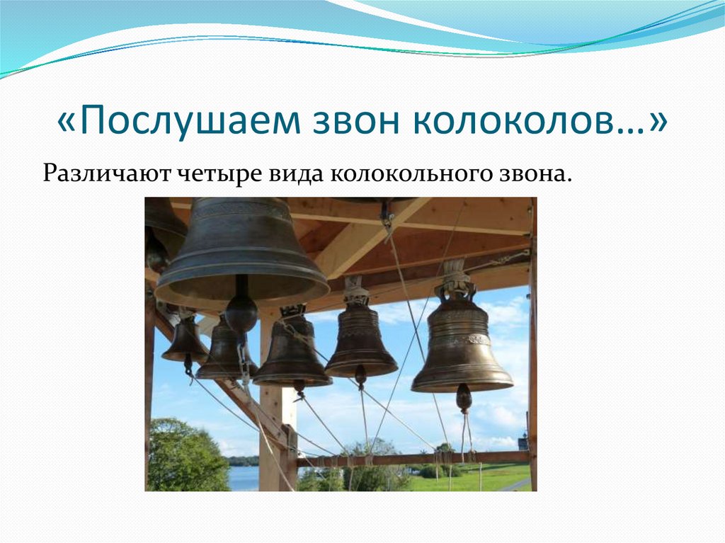 «Послушаем звон колоколов…»Различают четыре вида колокольного звона.