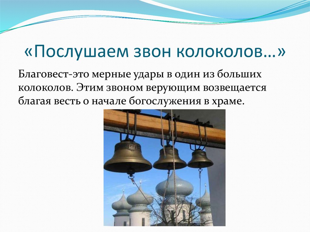 «Послушаем звон колоколов…»Благовест-это мерные удары в один из больших