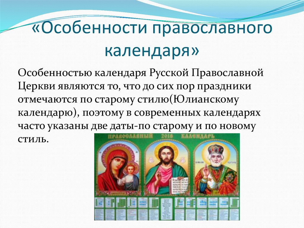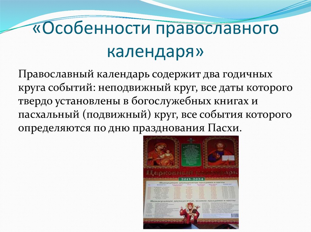 «Особенности православногокалендаря»