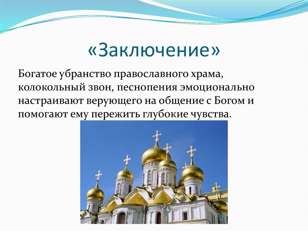 «Заключение»Богатое убранство православного храма,