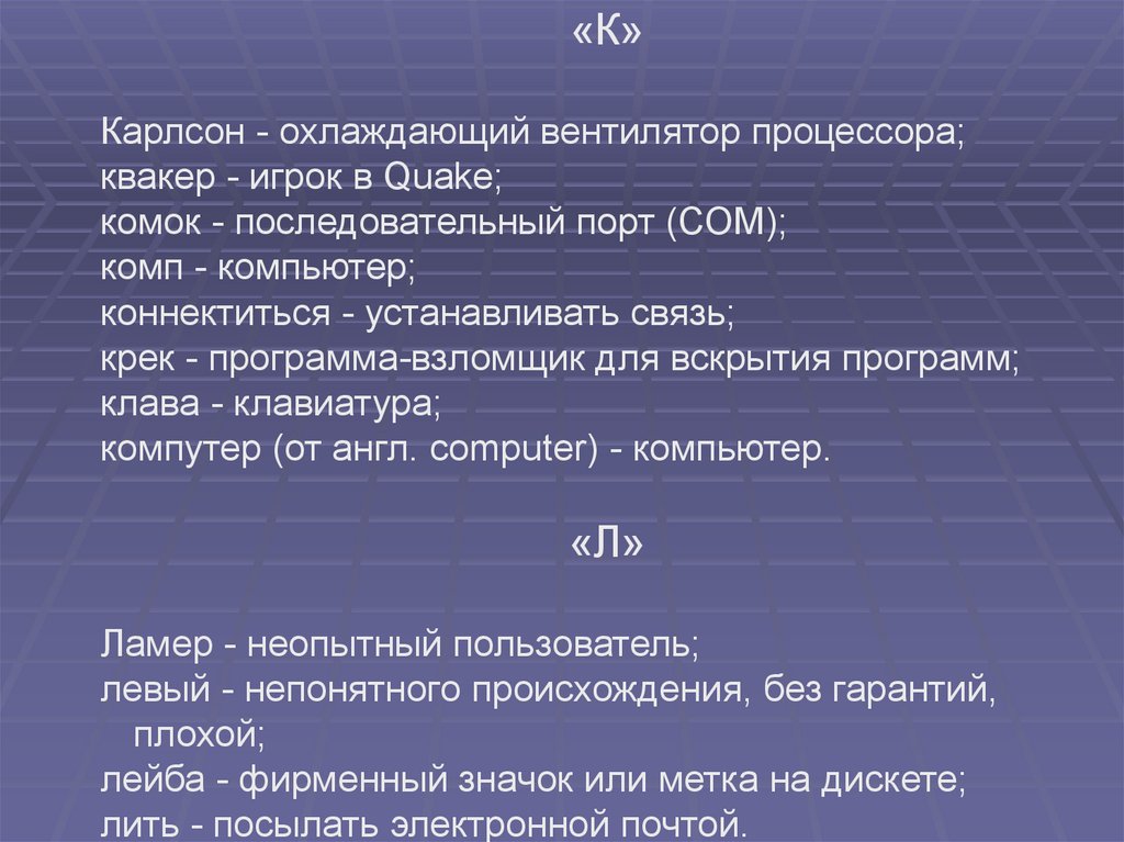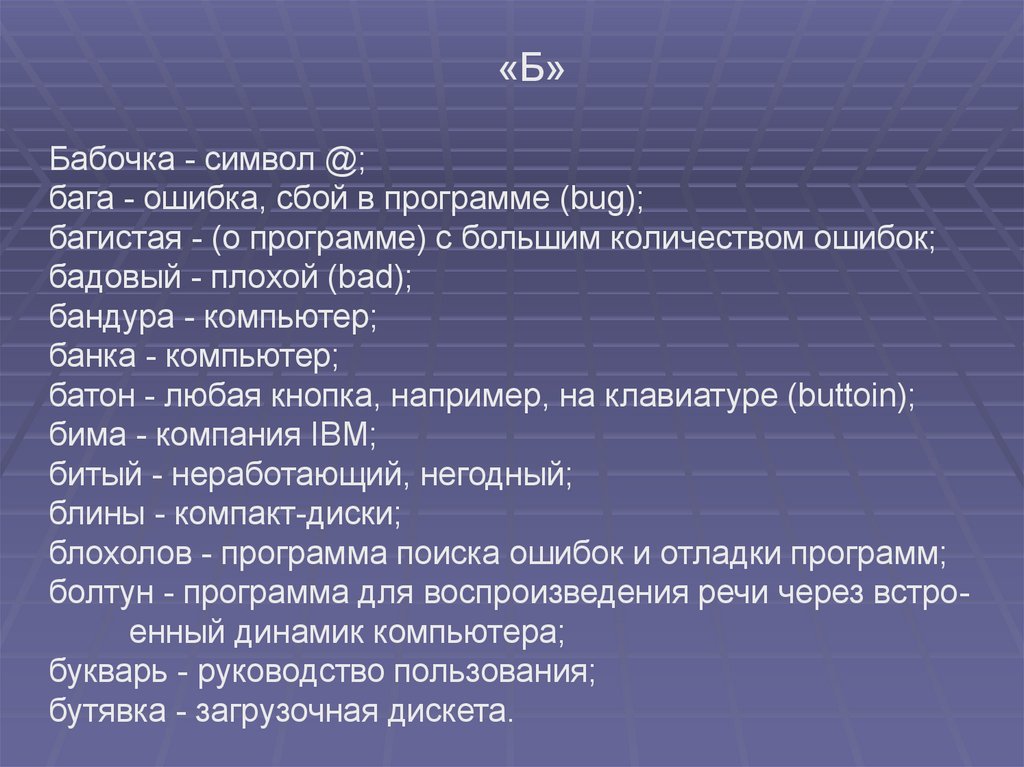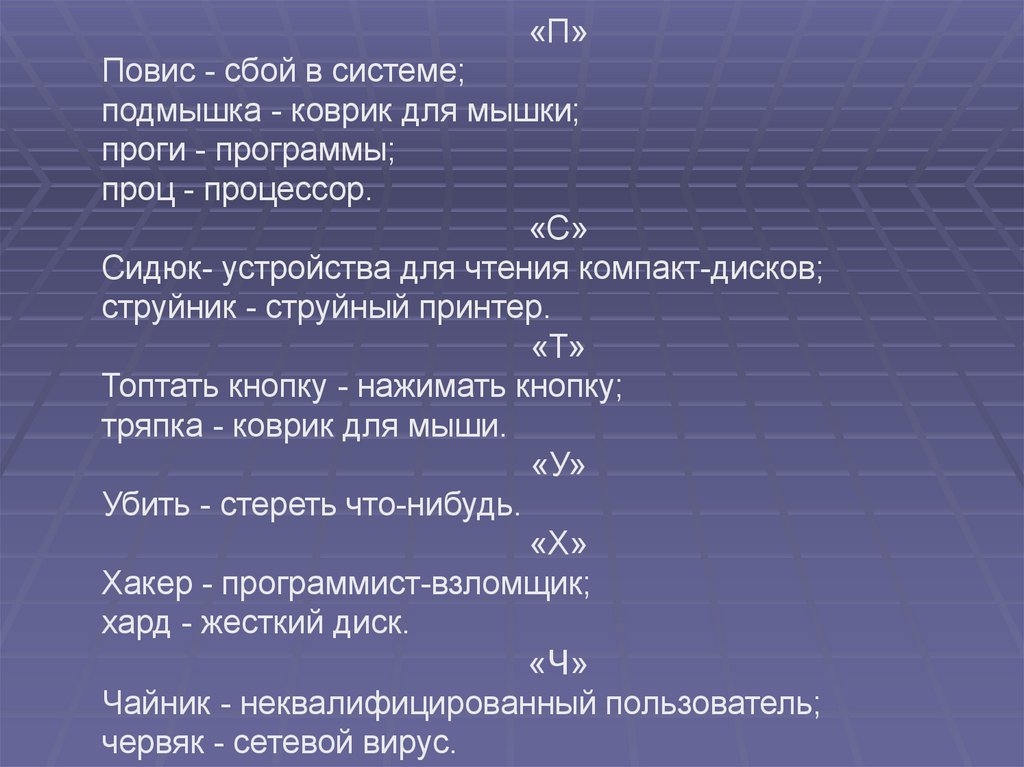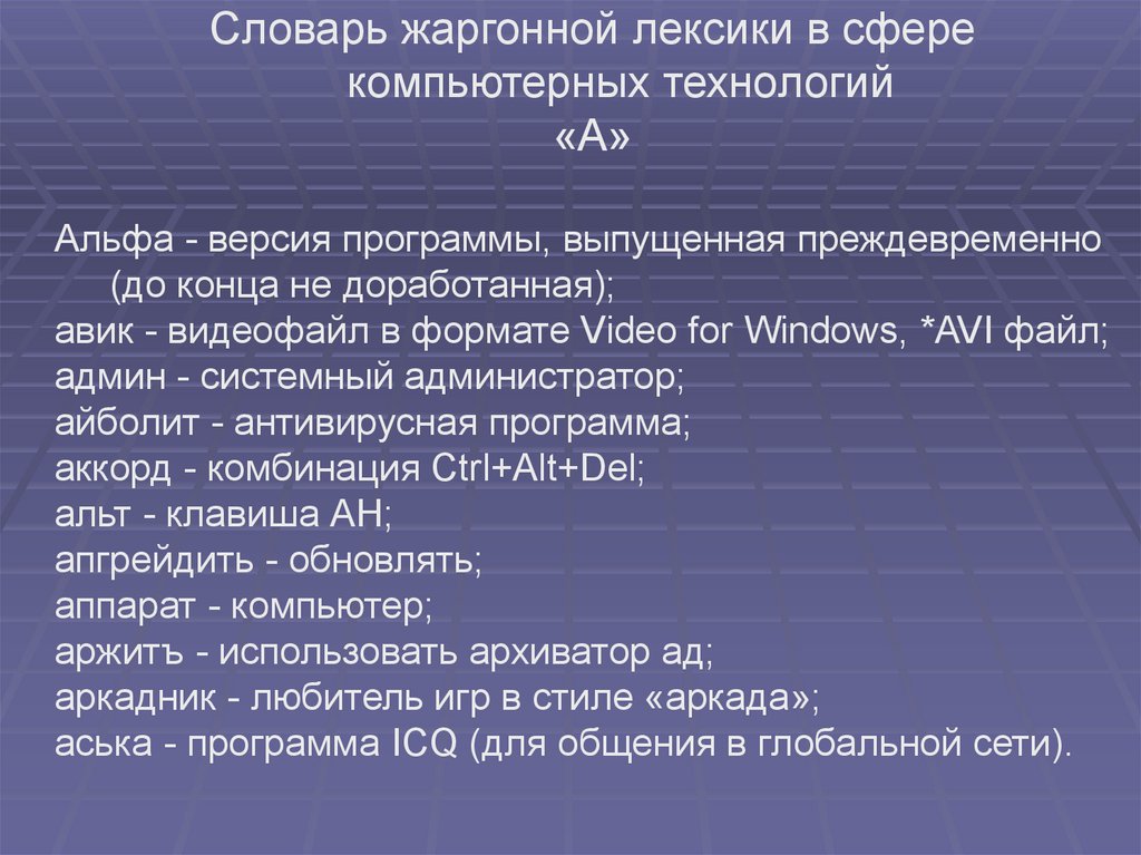 Словарь жаргонной лексики в сферекомпьютерных технологий