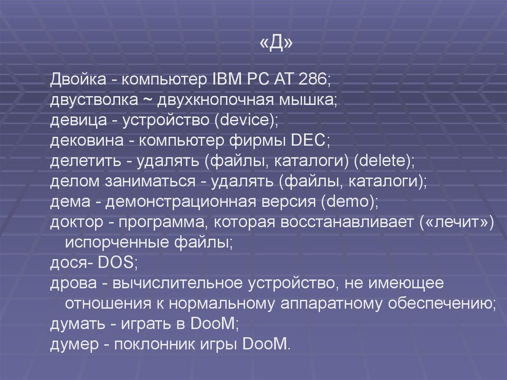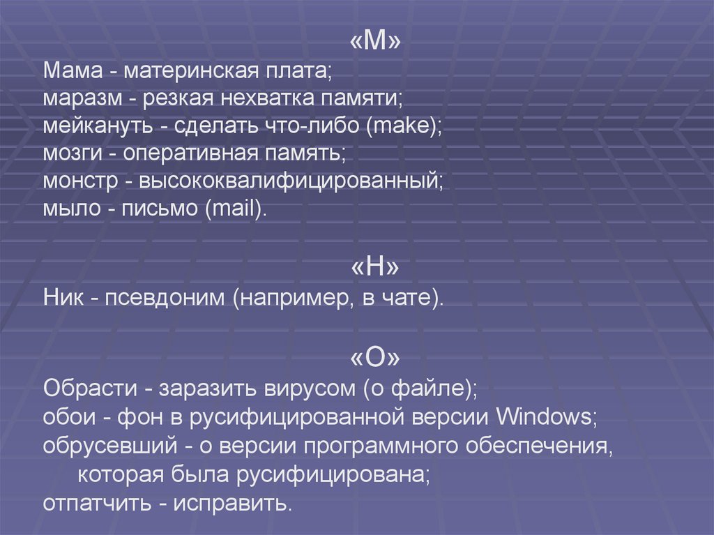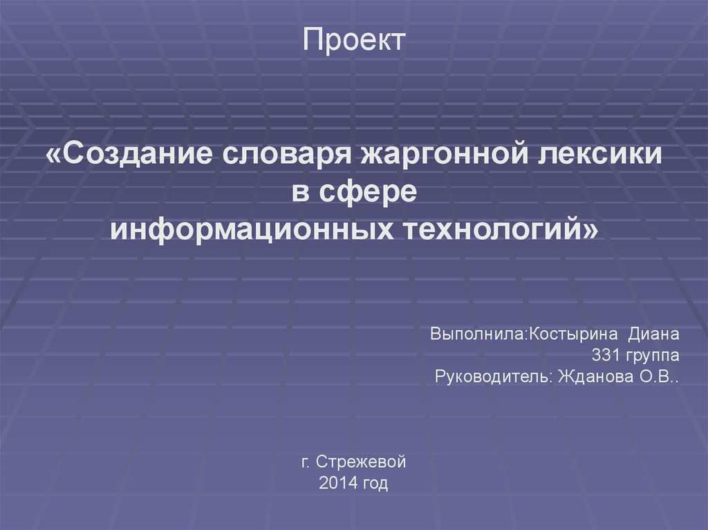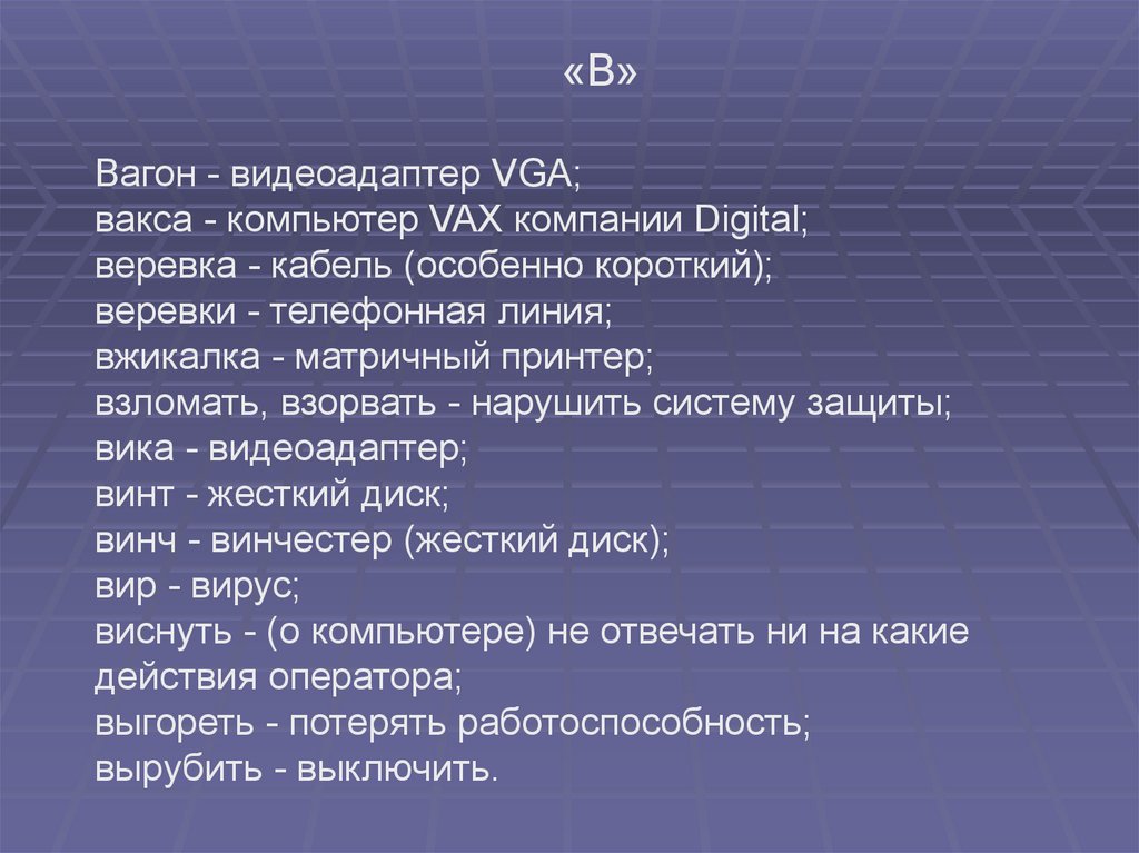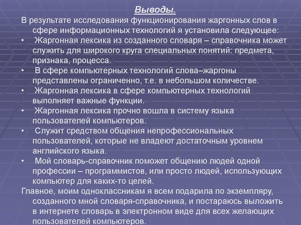 Словарь жаргонной лексики в сферекомпьютерных технологий