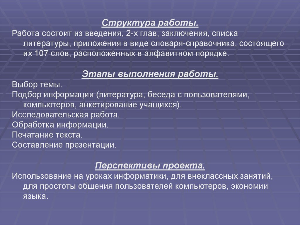 Структура работы.Работа состоит из введения, 2-х глав, заключения, списка