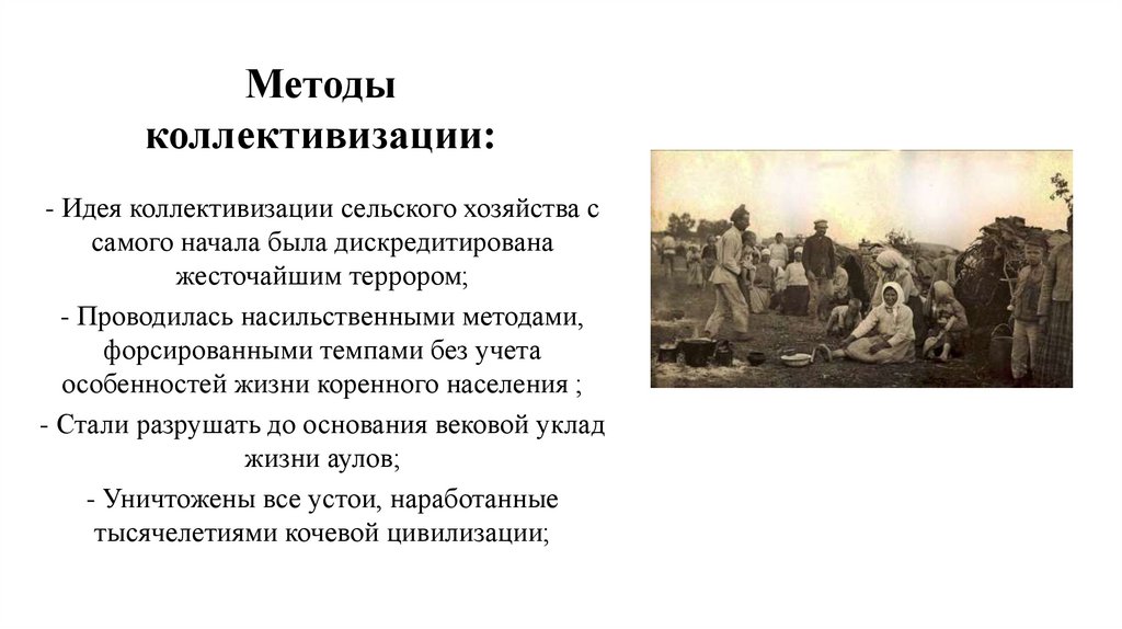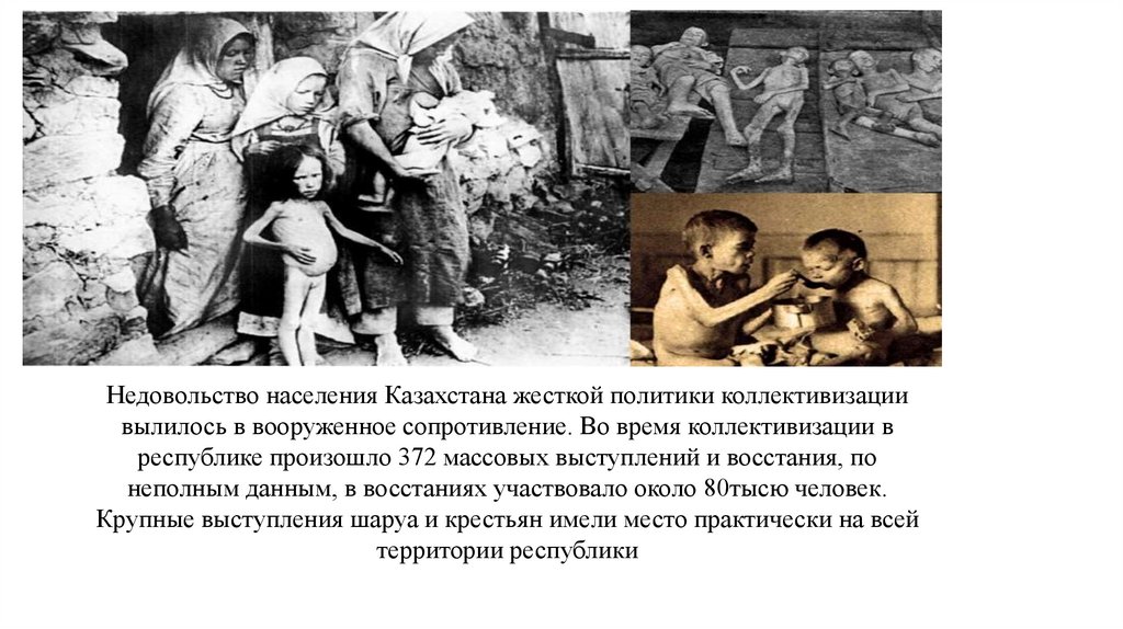 Недовольство населения Казахстана жесткой политики коллективизациивылилось в вооруженное сопротивление. Во время коллективизации в