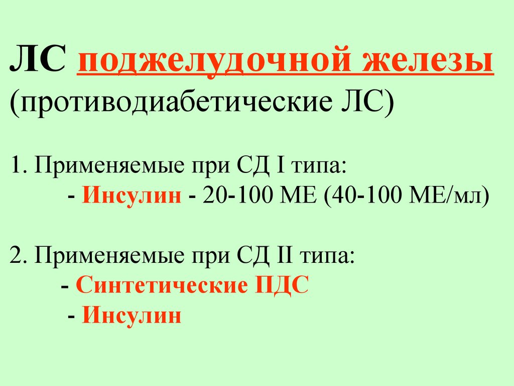 Синтетические противодиабетические средства1. Пр. Сульфонилмочевины ( секрецию инсулина, худым)